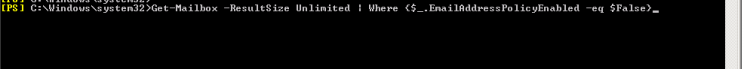 Get-Mailbox -ResultSize Unlimited | Where {$_.EmailAddressPolicyEnabled -eq $False}
