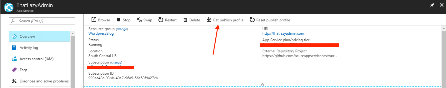 In today’s post I will quickly show, how you can get the login details to your Azure WordPress website. In a lot of instances, you just need to access the ftp site upload some file etc.