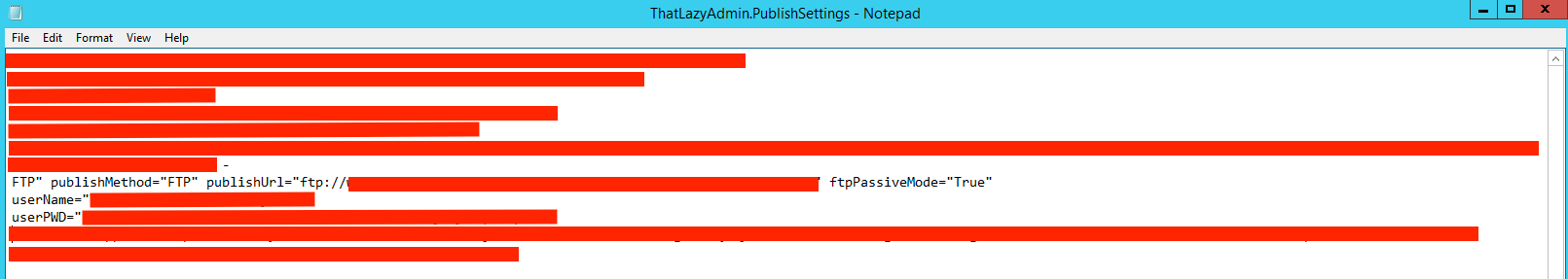 In the file, you can look for the following line: FTP” publishMethod=”FTP”. Here you will find the ftp url as well as the username and password.