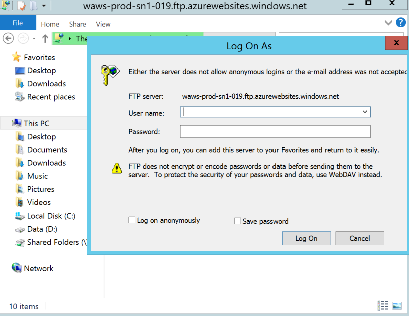 To test the url and the credentials, I will use windows explorer to connect to the ftp site with the details provide.