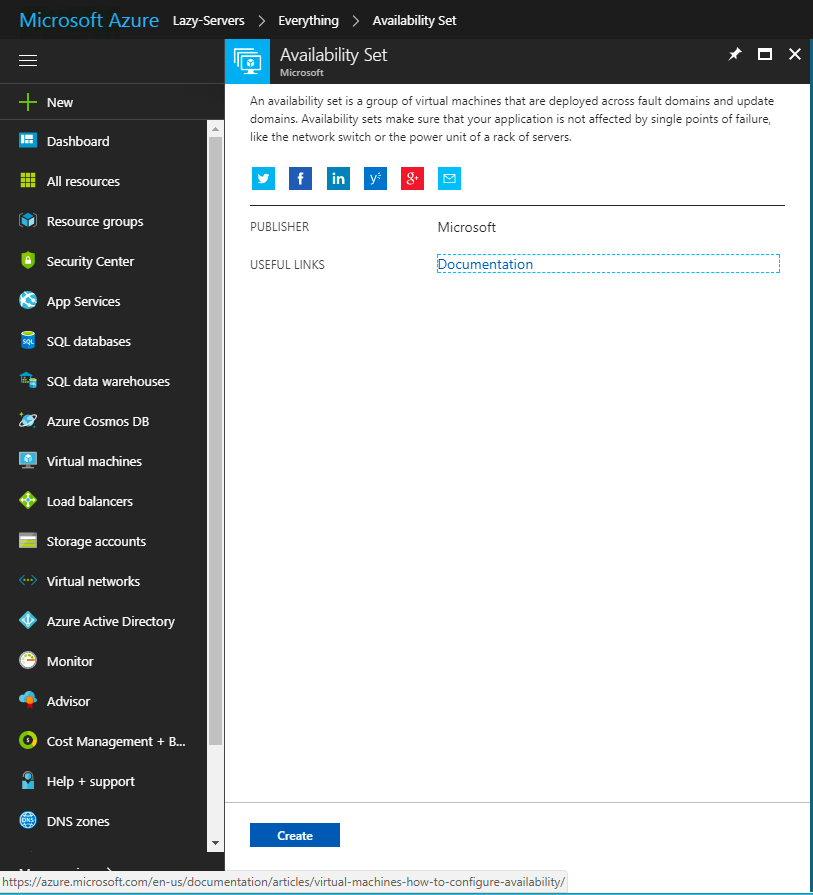 Once all the details have been completed, click on create to start the creation of the availability set.