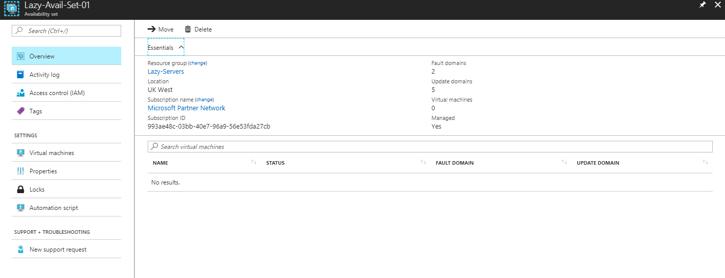 Now that the new VM has been created and the Availability set selected, let’s view the available machines in the availably set now.