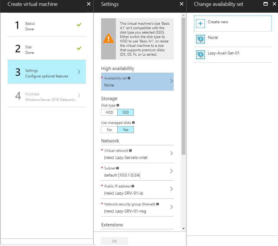 On the settings page when creating a new VM, there is an Option called High availability. This is where we will select the newly created Availability set.