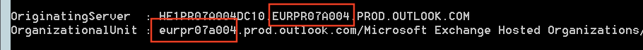 As we can see below the originating server is based in EU by looking at the naming convention being used.