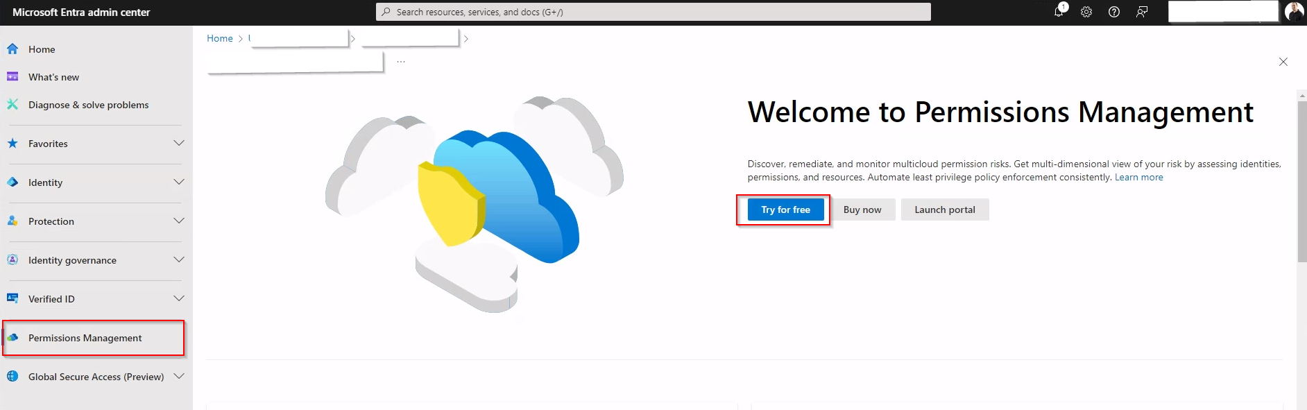 • Activate Permissions Management within the Microsoft Entra admin center.