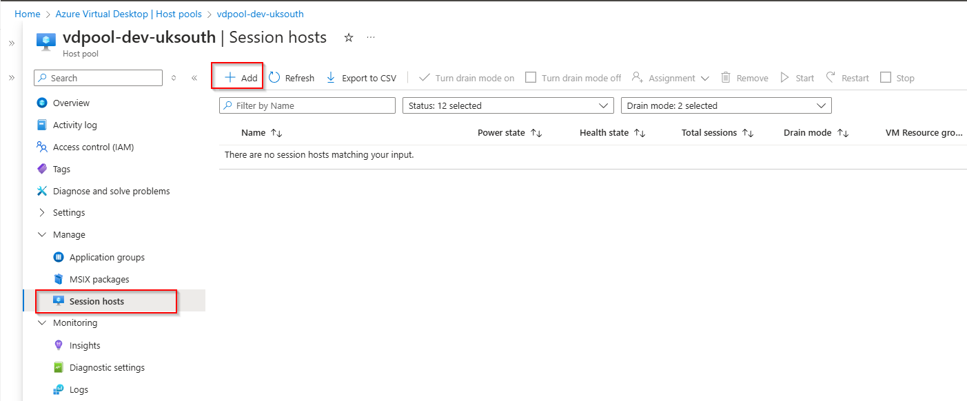 - Select the host pool where the new session host was deployed.