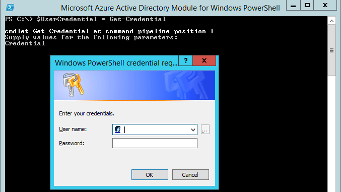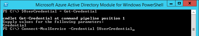Connect-MsolService -Credential $UserCredential