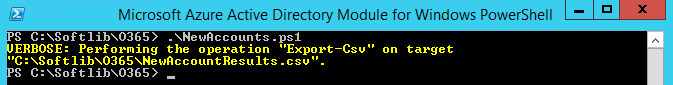 -LicenseAssignment $_.AccountSkuId} | Export-Csv -Path "C:\Softlib\O365\NewAccountResults.csv"